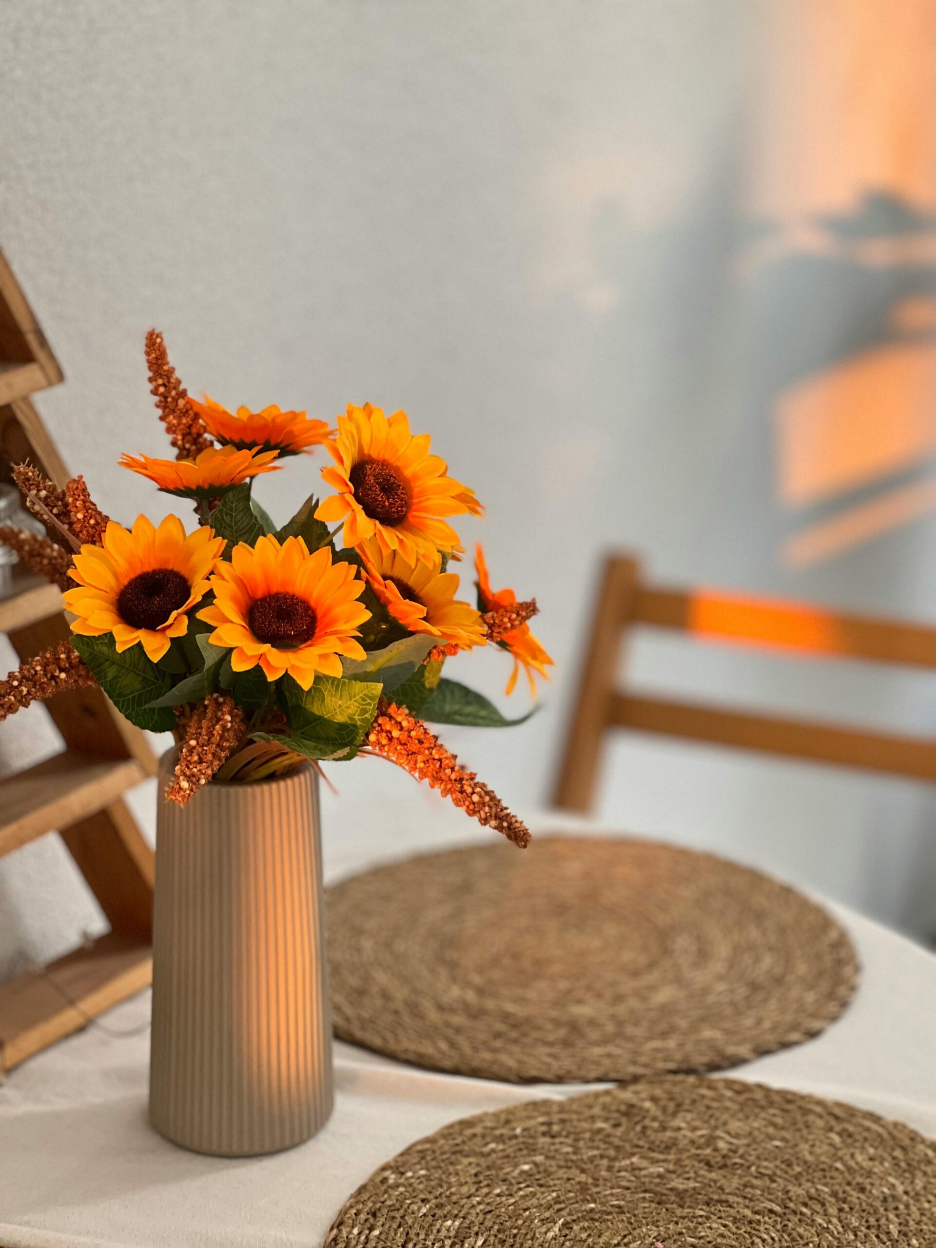 - Doğal Malzemeler: Gerçek çiçek veya doğal görünümlü kumaş çiçekler tercih edilirse, daha sofistike bir hava yakalanır.